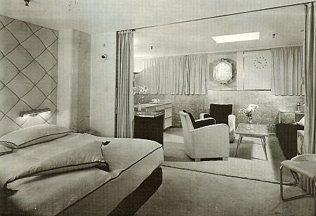 5 The SS America was the SS United States’s “running mate”; she was a smaller and slower pre-war ship, but featured rich and beautiful “Art Deco” interiors, similar compartmentalization against fire and flooding (as the Big U), and an overall uncanny resemblance. Designed by the William Gibbs and co., she served a very long and illustrious career that spanned over forty years.